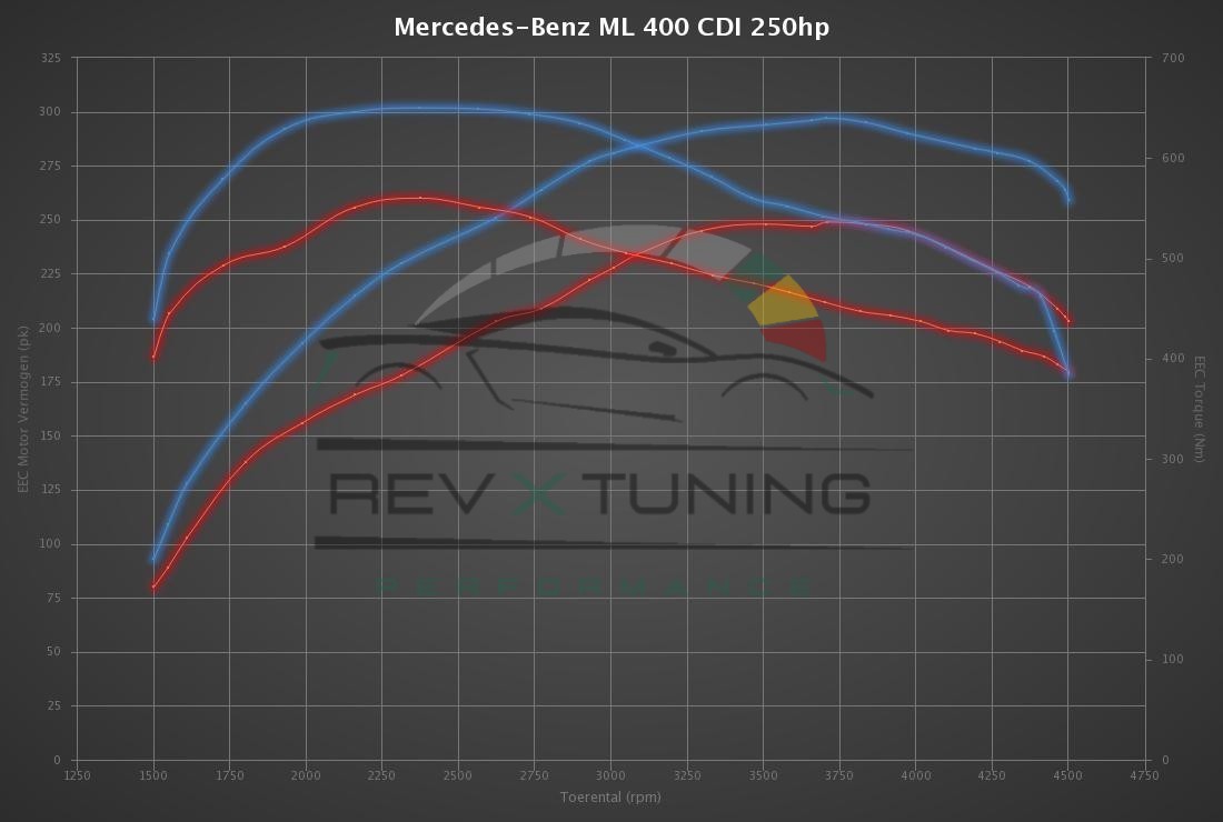 Revx-Tuning is leading in the development of Mercedes-Benz ML 400 CDI 250hp tuning files. The development of each Mercedes-Benz ML 400 CDI 250hp tuning file is the result of perfection and dedication by Revx-Tuning programmers. The organization only uses the latest technologies and has many years experience in ECU remapping software. Many (chiptuning) organizations around the globe download their tuning files for Mercedes-Benz ML 400 CDI 250hp at Revx-Tuning for the best possible result. All Mercedes-Benz ML 400 CDI 250hp tuning files deliver the best possible performance and results within the safety margins.